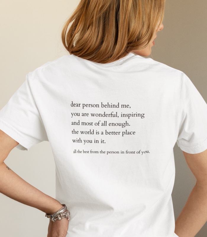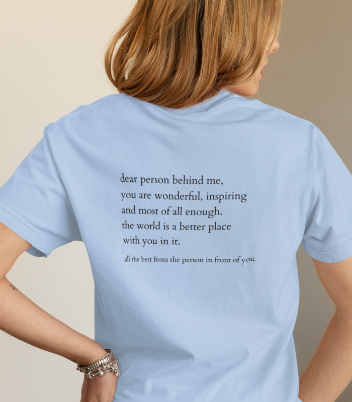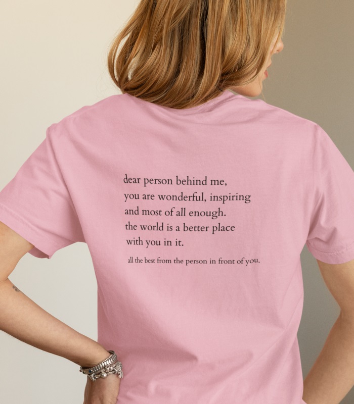 Schaffe positive Energie mit unserem „Dear person behind me“ T-Shirt! Ein liebevolles Design, das anderen eine Freude bereitet und für mehr Achtsamkeit im Alltag sorgt. Der V-Ausschnitt bietet einen angenehmen Tragekomfort.