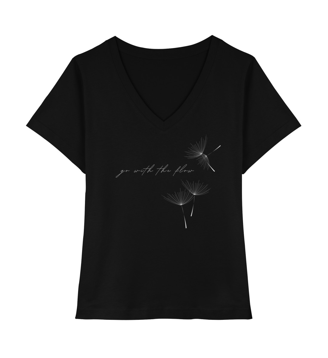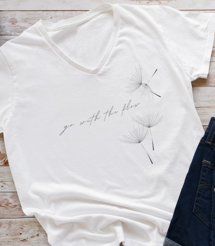 Lass dich von der Leichtigkeit des Lebens inspirieren mit unserem „Go with the Flow“ T-Shirt! Das Design erinnert dich daran, entspannt und achtsam durch den Alltag zu gehen. Der V-Ausschnitt sorgt für einen angenehmen Tragekomfort.