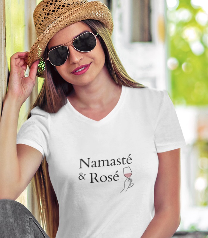 Namaste & Rosé – die perfekte Kombination für entspannte Vibes! Ob nach der Yoga-Session oder einfach zum Genießen: Dieses Shirt bringt Gelassenheit und guten Geschmack stilvoll zusammen. Prost auf innere Balance! ????????♀️