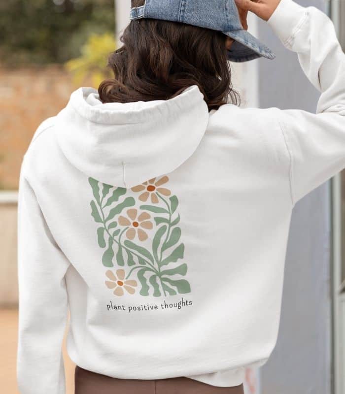 Unser Plant Positive Thoughts Hoodie ist wie ein Garten für die Seele. Mit einem charmanten Blumendesign ermutigt es dazu, positive Gedanken zu pflanzen und ein Umfeld des Wachstums und der Schönheit zu schaffen.